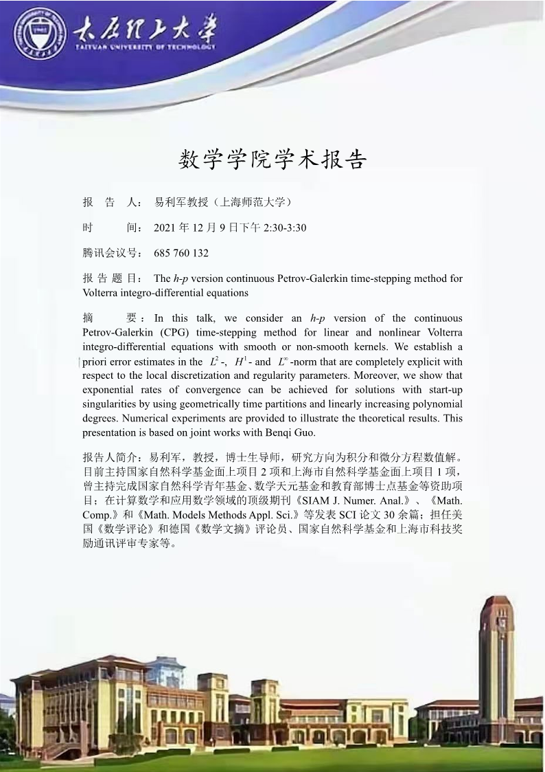 太阳成集团tyc234cc将于12月9日邀请上海师范大学易利军教授作报告