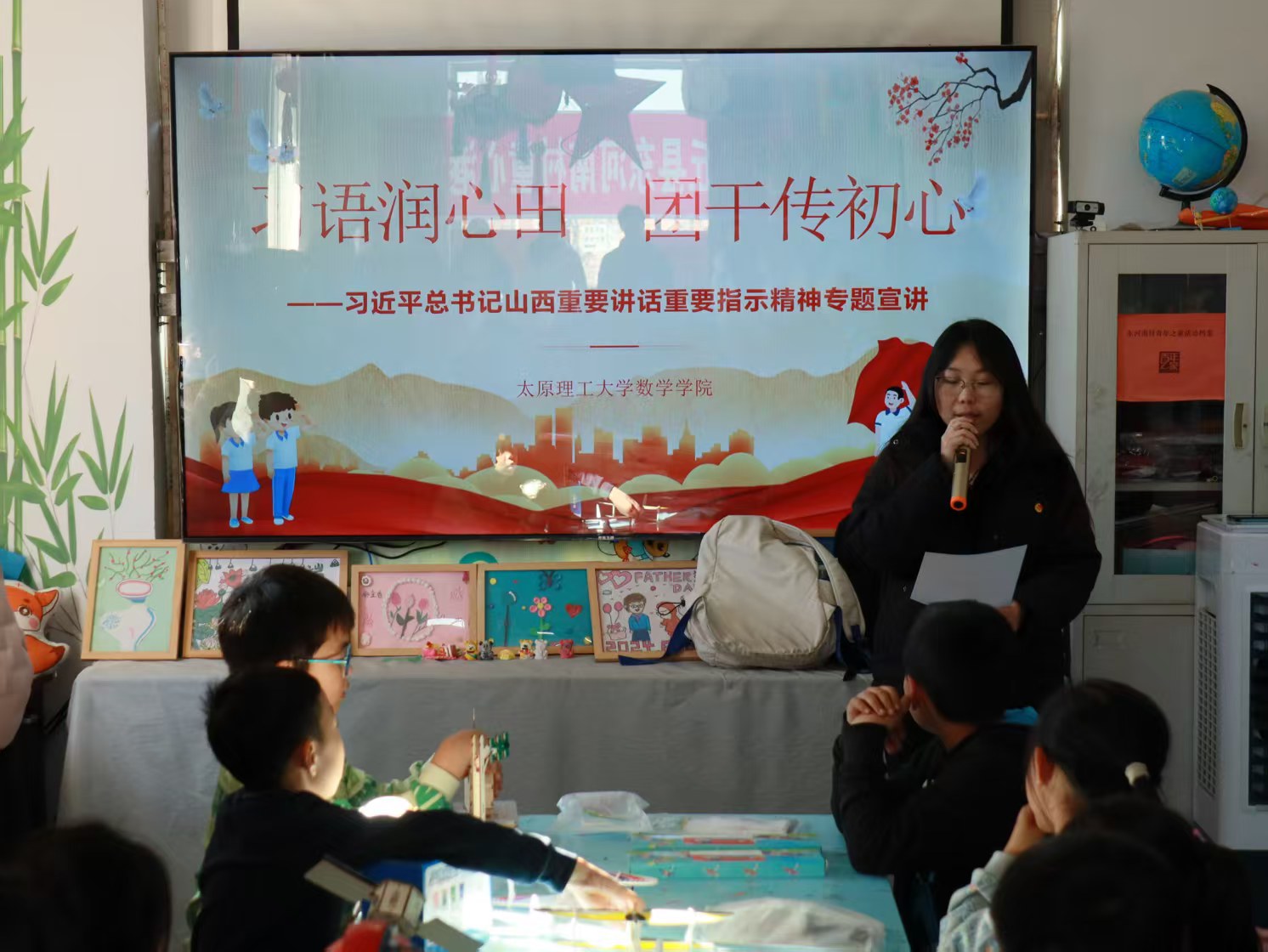 11月2日,为深入学习贯彻习近平总书记系列重要讲话重要指示精神,传承红色基因,厚植爱国情怀,太阳成集团tyc234cc第三期青马工程“尚德班”学员来到大同市灵丘县东河南村童心港湾,开展“习语润心田,团干传初心”主题团日活动,为乡村孩子们送上一场兼具思想性与趣味性的“红色盛宴”。
