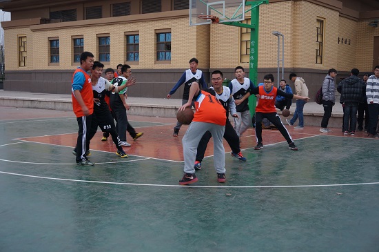 接下来是主席、部长们与大一同学的交流赛,这亦是本场比赛的压轴赛。赛场上,大一同学与员工会主席、部长们各显身手,互不相让。在大一队率先投入一个球后,主席、部长队后来居上,接连进球。大一队不甘落后,积极进攻,中场时稍微拉近双方比分。下半场开始后,主席、部长们发起进攻,大一队防御中寻找进球机会,但随着主席、部长们的接连不断的进球,比赛分差逐渐拉开,最终以43:33主席、部长队胜出而结束比赛。这场比赛打得酣畅淋漓,拉近了员工干部与普通同学之间的关系,达到了员工干部与员工交流和互相促进的目的。自此,“全明星篮球赛”画上一个圆满句号。