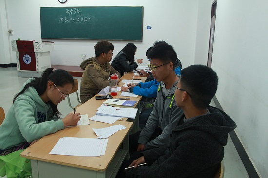 此次面试地点分两间教室,一间休息室,一间面试室。家教中心全体成员参加到了此次活动中。面试过程中,一切井然有序的进行。面试者从休息室依序到面试室。在面试教室,家教中心各部长(主任)带领部员向面试者提出与其所报科目的相应问题,要求其对该题目做出详细的讲解,包括做题方法,步骤以及题目的易错点,主要考察面试者的交流与表达能力以及对知识的掌握度。前来面试的教员不论题目难易,都以认真、负责的态度对待,凭借自己的能力尽可能清晰的讲解了各个问题。各部长及其部员不论面试者讲解如何,都认真听取了面试者的回答,并做了相应记录。面试结束后,各面试官反复讨论各面试者的表现是否可以胜任所报科目的教员。面试结果将于10月25日通过短信告知大家。