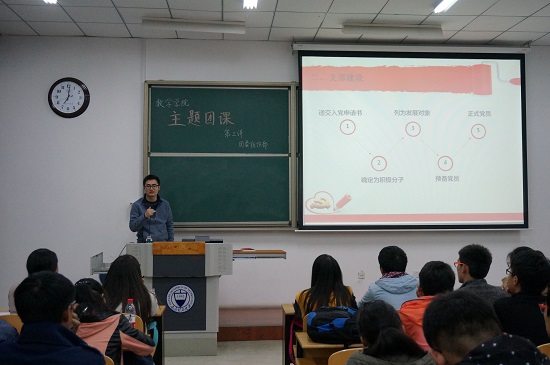 公司为期一周的团课活动已经举行了两天,同学们对团、党也有了进一步的了解,更加憧憬成为一名优秀合格的正式党员。为此,公司团委组织部于10月28日晚在行思楼C123教室开展了团课活动第三讲,15级辅导员姜昆老师就入党流程及党支部近几年的建设和取得的辉煌成绩做了详细讲解。