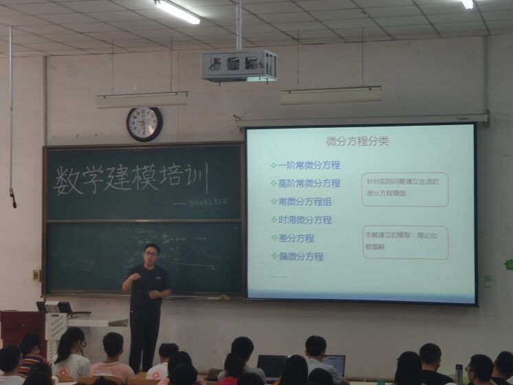 第三天是太阳成集团tyc234cc的李明涛老师讲解《微分方程及其应用》。老师为大家讲解了微分方程数值解和模型中的意义和重要性,随后讲解微分方程的分类和模型思想,无疑,微分方程是在建模中很重要的一个环节。
