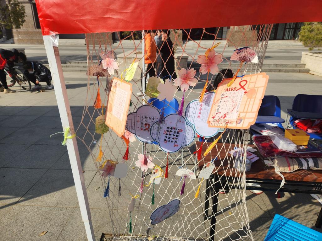 除此之外,同学们在留言条上写下美好祝愿和温暖话语,表达对艾滋病患者的支持与鼓励。红色丝带和暖心留言条随风摇曳,在寒风中传达着同学们的关怀和善意,希望人们消除歧视,彼此治愈、彼此包容,共同迎接美好未来。