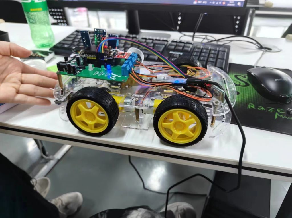 进入钧铖智能科技有限公司,师生们在工作人员带领下来到智能制造人工智能实验室和工业自动化机器人应用实验室观摩学习。工人人员向同学们详细介绍了智能小车的各个组成部分,包括传感器、控制器、电机驱动等,并现场指导同学们对人工智能小车进行编程操控。在工业自动化机器人应用实验室,负责人给师生们科普了工业机器人的发展历程、主要分类、工作原理以及编程方法,详细介绍了自动化机器人在工业上的广泛应用、发展前景,以及其完成各项生产任务的高效性和准确性,让同学们对工业机器人有了全方位的认识,并进行了对机械臂编程和控制的实操训练。