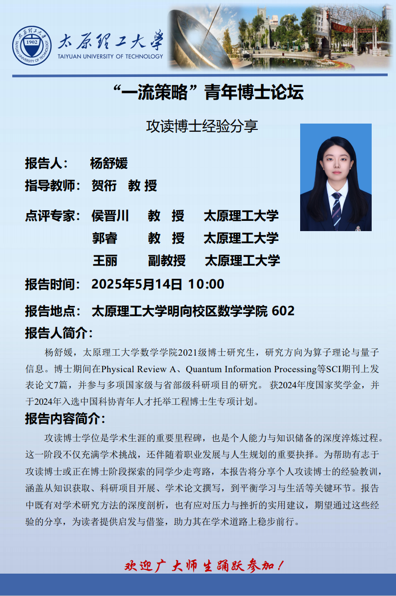 公司将于5月14日举办“一流策略”青年博士论坛