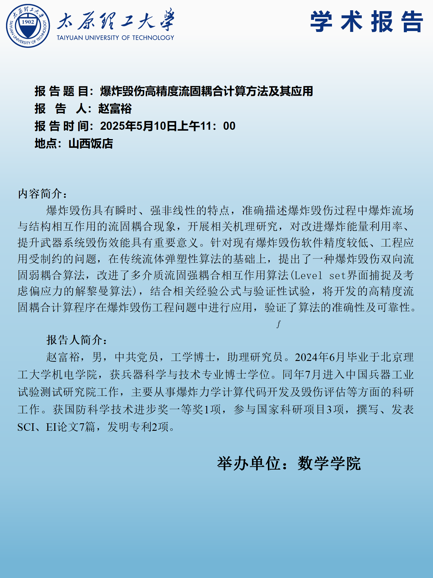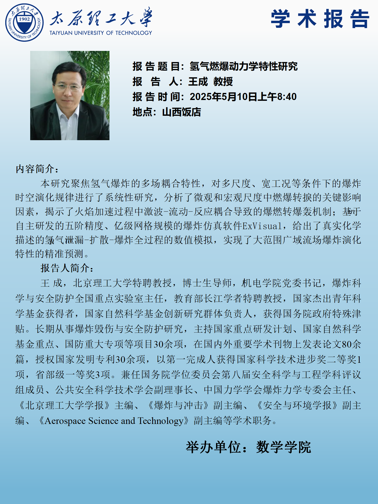 太阳成集团tyc234cc将于5月10日邀请贾祖朋 、王成、赵富裕教授做学术报告