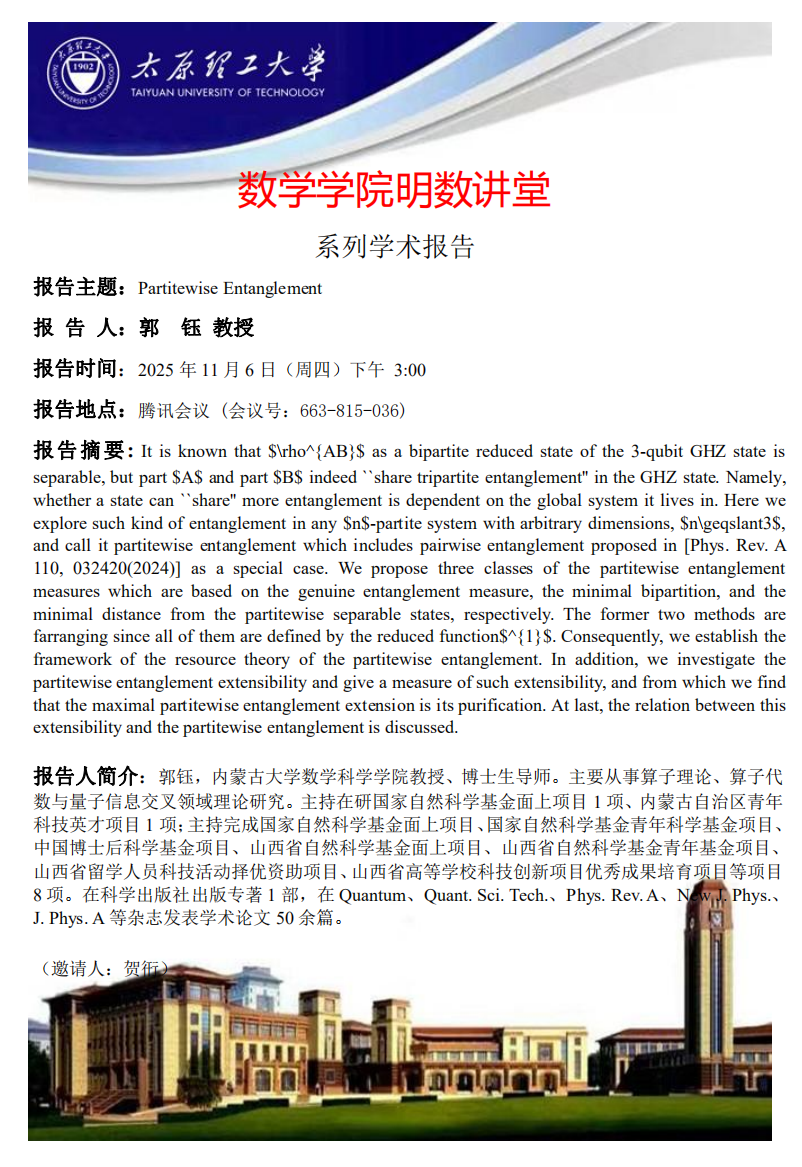 太阳成集团tyc234cc将于11月6日邀请郭钰教授做学术报告