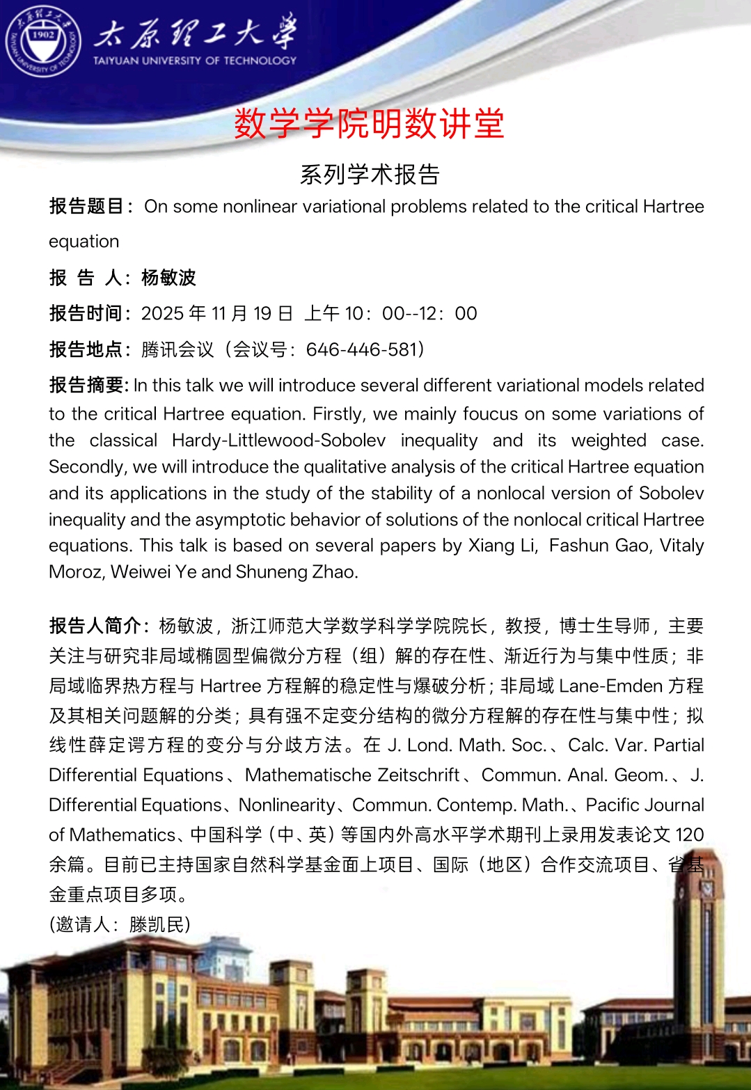 太阳成集团tyc234cc将于11月19日邀请杨敏波教授做学术报告