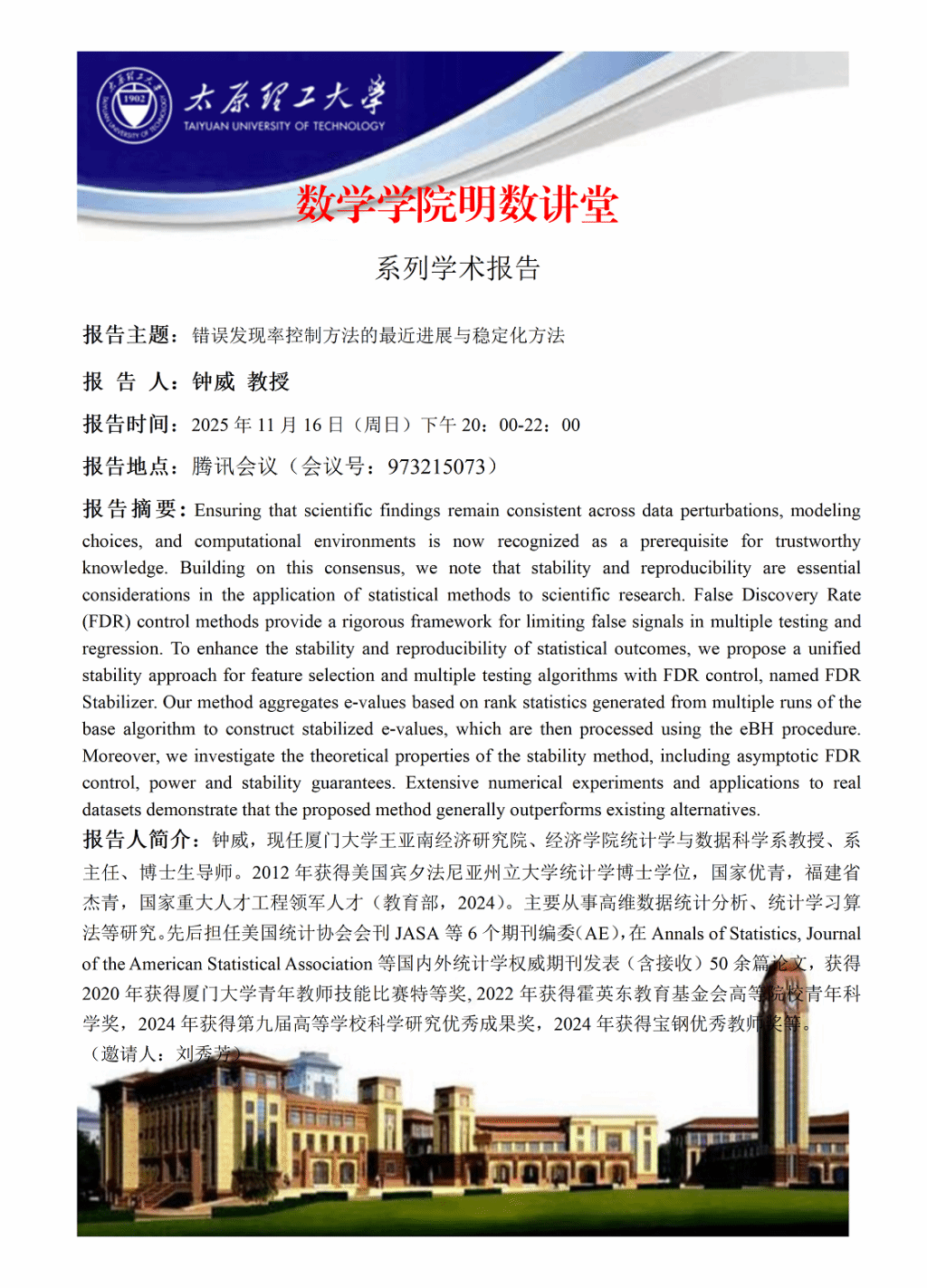 太阳成集团tyc234cc将于11月16日邀请钟威教授做学术报告