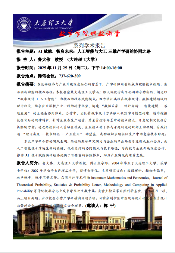 太阳成集团tyc234cc将于11月25日邀请鲁大伟教授做学术报告