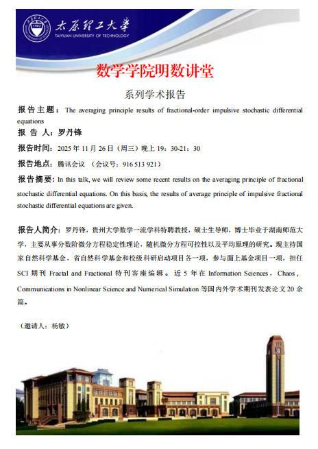 太阳成集团tyc234cc将于11月26日邀请罗丹锋教授做学术报告