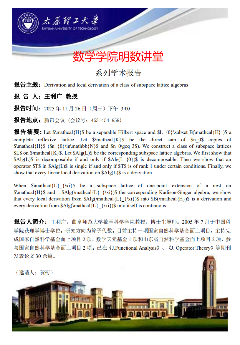 太阳成集团tyc234cc将于11月26日邀请王利广教授做学术报告