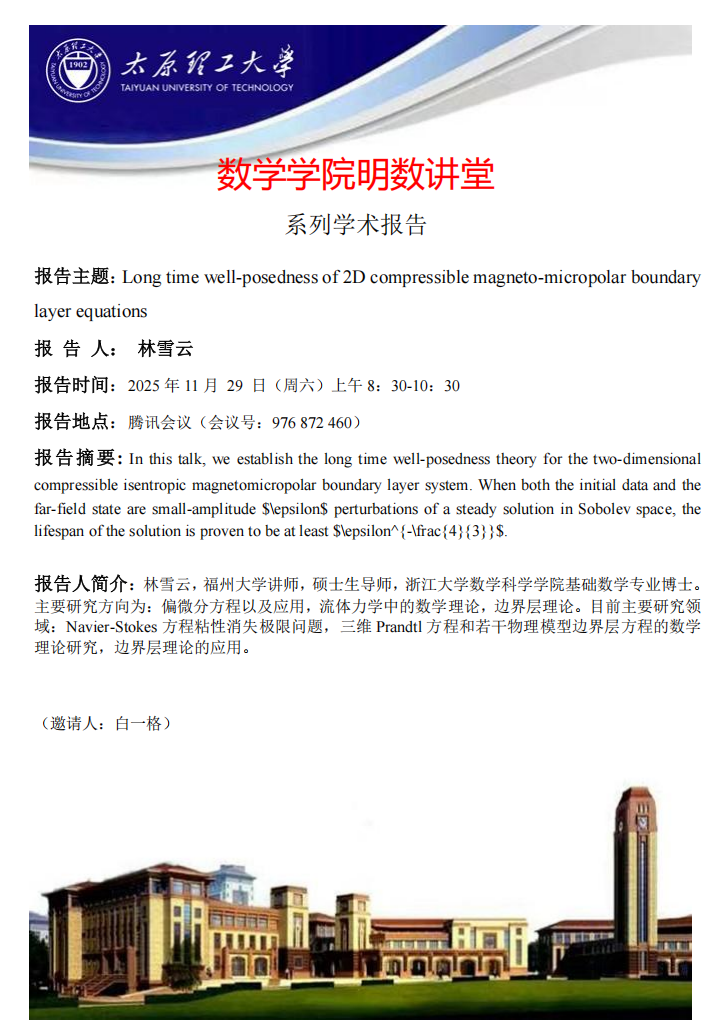 太阳成集团tyc234cc将于11月29日邀请林雪云做学术报告