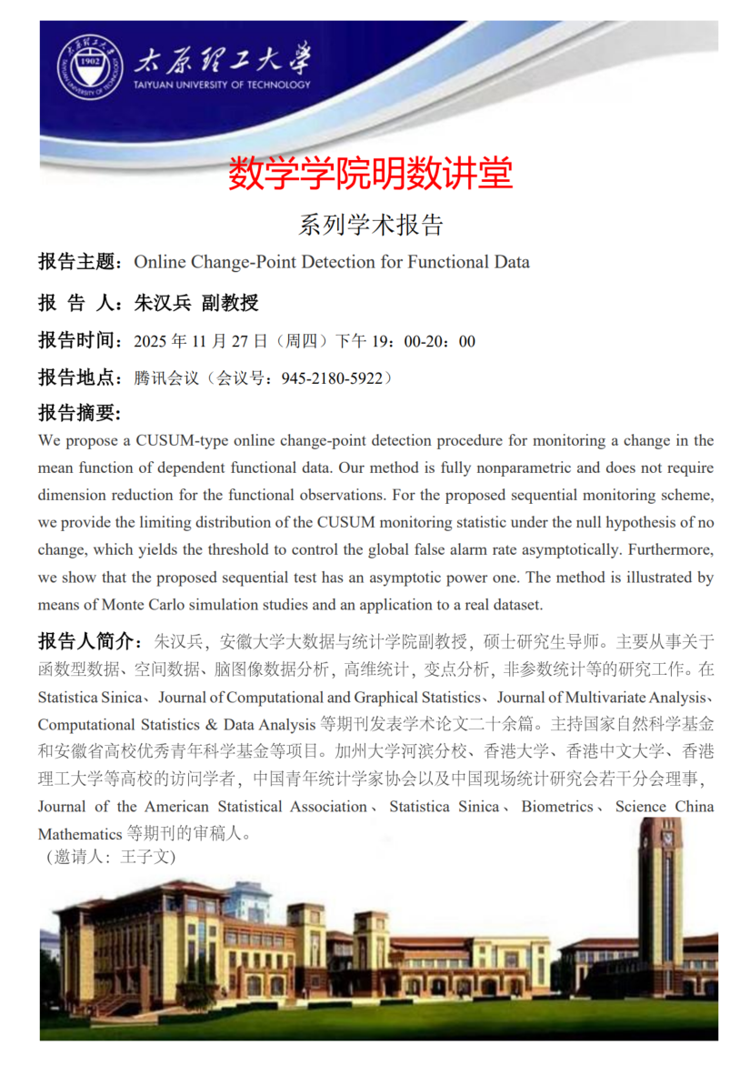 太阳成集团tyc234cc将于11月27日邀请朱汉兵做学术报告