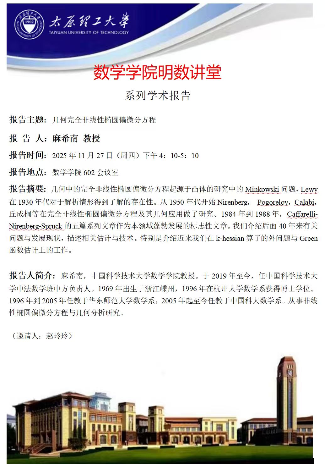太阳成集团tyc234cc将于11月27日邀请麻希南做学术报告