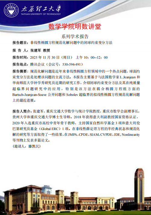 太阳成集团tyc234cc将于11月30日邀请张建军教授做学术报告