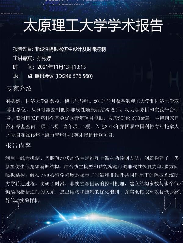 太阳成集团tyc234cc将于11月13日邀请郑辉教授、孙秀婷教授、周立隆工程师作专题报告
