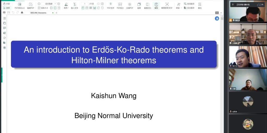 在太理百廿校庆之际,公司图论团队邀请到北京师范大学数学科学公司博士生导师王恺顺教授做了题为“An introduction to Erdős-Ko-Rado theorems and Hilton-Milner theorems”的学术报告。