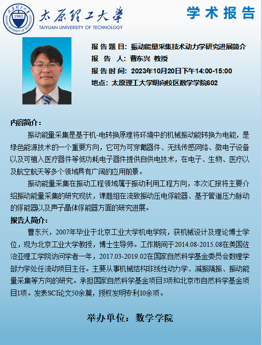 报告题目:振动能量采集技术动力学研究进展简介