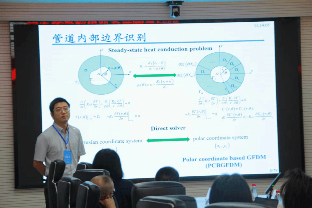 此外,团队老师和同学还与专家通过圆桌会议、主题讨论等环节,针对无网格方法、神经网络求解偏微分方程、流固耦合的数值方法稳定性和效率等内容进行了深入讨论,并计划开展多项合作。