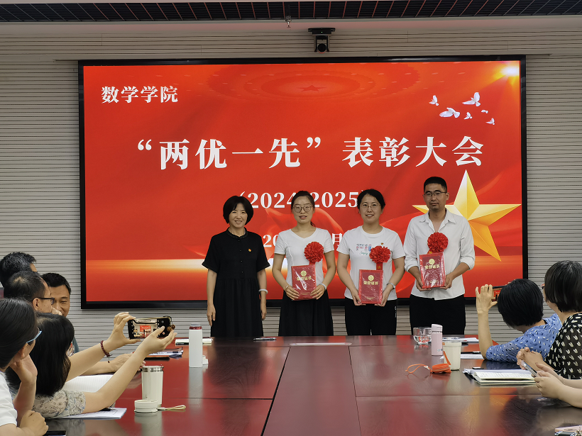 柴玉珍宣读了数学公司党委《关于表彰2024-2025年先进基层党组织、优秀共产党员和优秀党务工作者的决定》。公司党委决定,授予数学第一本科党支部“先进基层党组织”的荣誉称号,授予高犇等5名共产党员“优秀党务工作者”的荣誉称号;授予崔文红等8名共产党员“优秀共产党员”的荣誉称号。