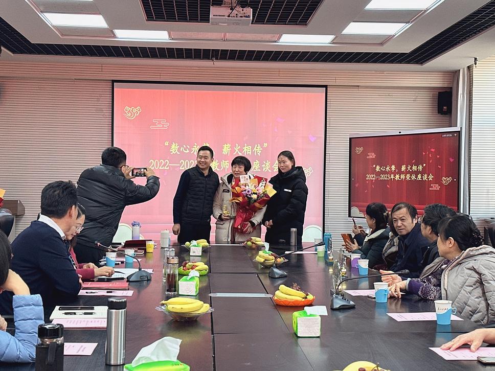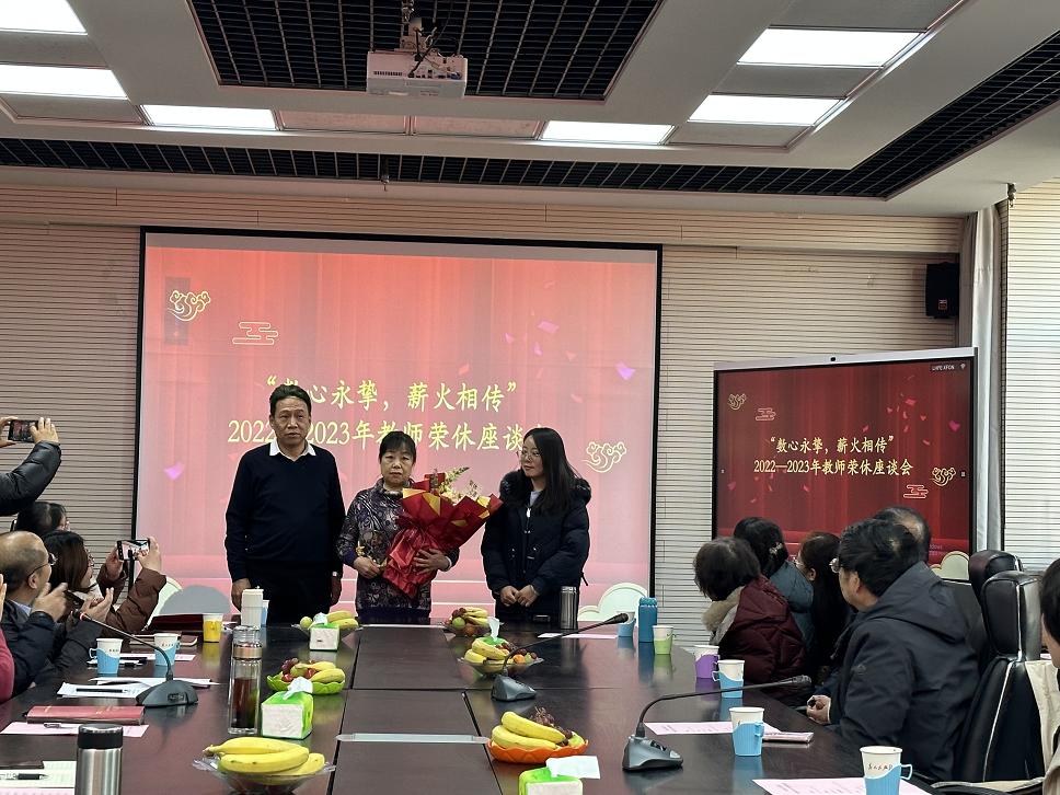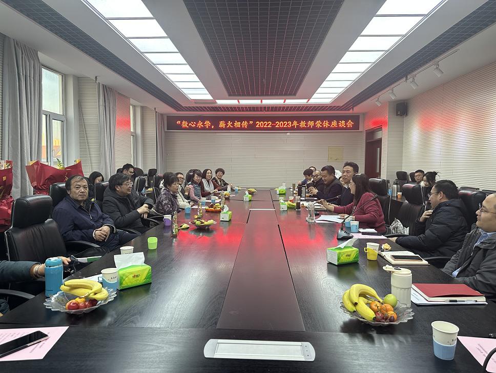 2023年12月26日下午,太阳成集团tyc234cc在602会议室召开了荣休教师座谈会,共同为荣休的赵志刚、秦效英、杨茂财、王淑丽、李桂莲、王绪柱、王彩贤老师表达感谢和祝福。公司党委书记游志勇、经理杨卫华、副经理柴玉珍、工会主席孙高峰,以及三办主任,系部中心主任、副主任,教工党支部书记,青年教师代表等参加座谈。公司党委副书记李楠楠主持座谈会。