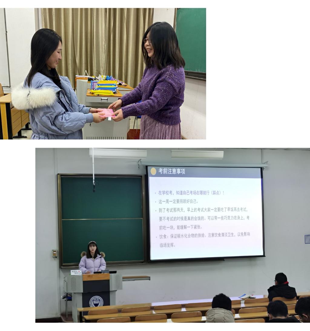 活动中,毕业班辅导员向全体同学表达了关怀与慰问,鼓励同学们一定要抓住这最后的时间,奋力一搏,所有的努力一定都会获得回报,希望大家得偿所愿,一战成硕。在经验分享环节,邀请了2020届毕业生、2020级研究生余娩霞同学,为大家做主题为“一‘研’为定”的考研冲刺经验交流,内容涉及考场用品清单、考研前一周复习建议、考前(时)注意事项等。此外,辅导员为每一位考研学子送上公司精心准备的考研加油包,其中包括一个笔袋,一支彩笔,一封来自辅导员的祝福信,折叠成帆船的形状,寓意着“一帆风顺”。活动结束后,同学们纷纷表示,公司的暖心举动,舒缓了紧张心情,也增强了自信心,相信定能蟾宫折桂、不负坚持。