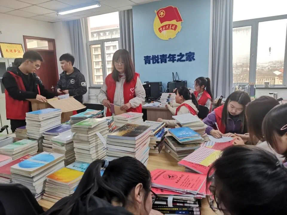 捐书活动现场,志愿者热情如火,现场气氛暖如春夏,大家争相捐赠。同学们纷纷拿出自己目前闲置的专业课书籍和考研书籍,有的同学捐赠的书籍多到需要用行李箱来运送;有的同学积极捐赠却不愿留下姓名;有的毕业生主动分享出自己的专业课笔记以及考研书籍。为期一天的活动,参与捐赠人数近100人次,收到捐赠书籍共计486本。捐赠者张玉波表示:“这些书籍一部分是学长学姐送给我的,承载着学长学姐对我的祝福与希望,一部分是自己大学四年积累下来的。现在我把这些书籍捐给青悦书屋,将祝福、希望与爱心继续传递下去,让更多学子受益”。现场的志愿者们深受感染,认真登记好每一本书,并将捐助的书籍分类,妥善保管。捐书结束后,志愿者们主动来到“青悦书屋”,逐一将书籍编号归纳,交付青悦志愿者中心管理。