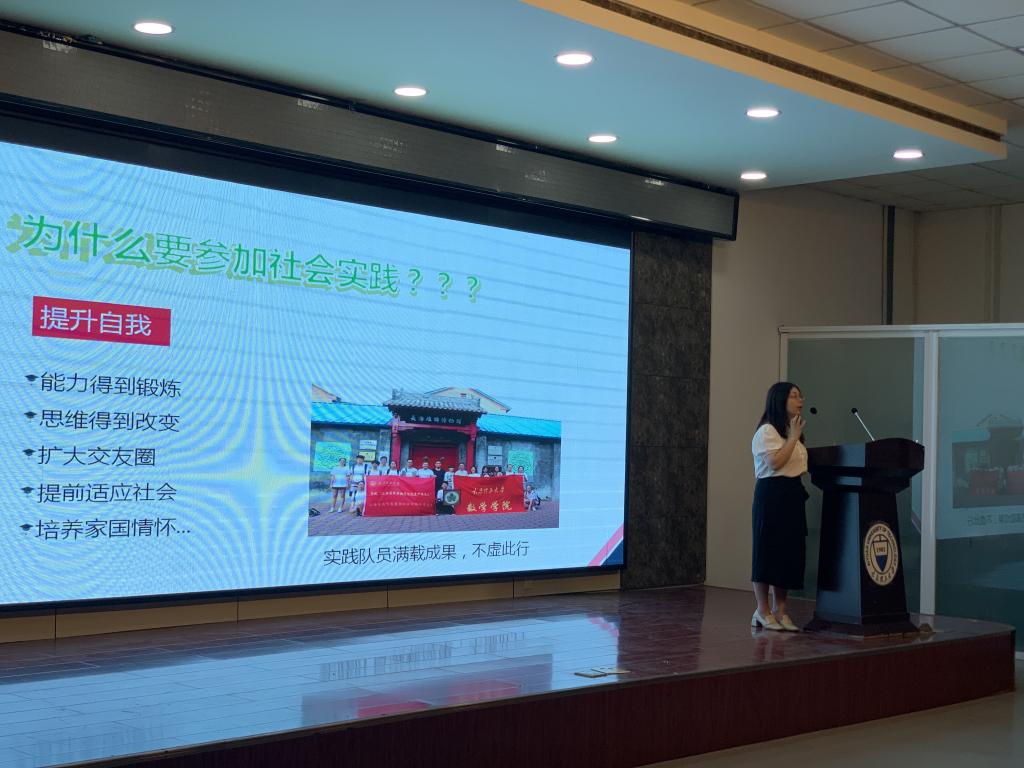 随后,由2019年各暑期“三下乡”集中实践队成员代表分享自己暑期“三下乡”社会实践的经历和收获。参与宣讲的有赴运城夏县社会实践队的代表原一菲、数学建模社会实践队的代表吴成涛、赴晋城实践队代表田宜超以及赴吕梁方山县实践队代表王晴文。他们不仅耐心地向同学们介绍社会实践的过程,还展示了实践期间的精彩瞬间,分享了参与实践调研的经历。