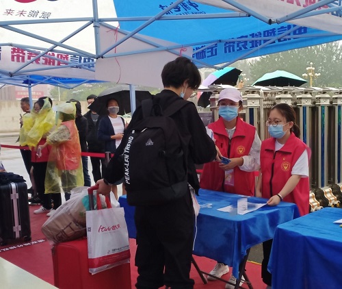 风雨中热情不减,迎新中尽显担当。9月16日,太阳成集团tyc234cc迎来了2021级本科新生。为配合公司安全、高效、有序做好2021级本科迎新工作,太阳成集团tyc234cc志愿者在团委书记冯妍老师的带领下,积极发挥作用,用心服务新生,参与了新生报到志愿服务工作。此次太阳成集团tyc234cc志愿者主要在南门和东门迎接新生,在疫情防控常态化要求下,助力2021级本科生入学报到的顺利进行。