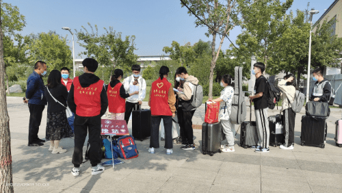 全天,身着红色马甲的志愿者们一直奔波在车站广场。他们工作认真,热情饱满,没有漏接一人。校团委书记闫新来到车站慰问,耐心询问志愿者接站情况,还为志愿者带了接站物资。五位志愿者认真地完成了本次志愿服务工作,平安高效地保证了71名同学顺利返校。