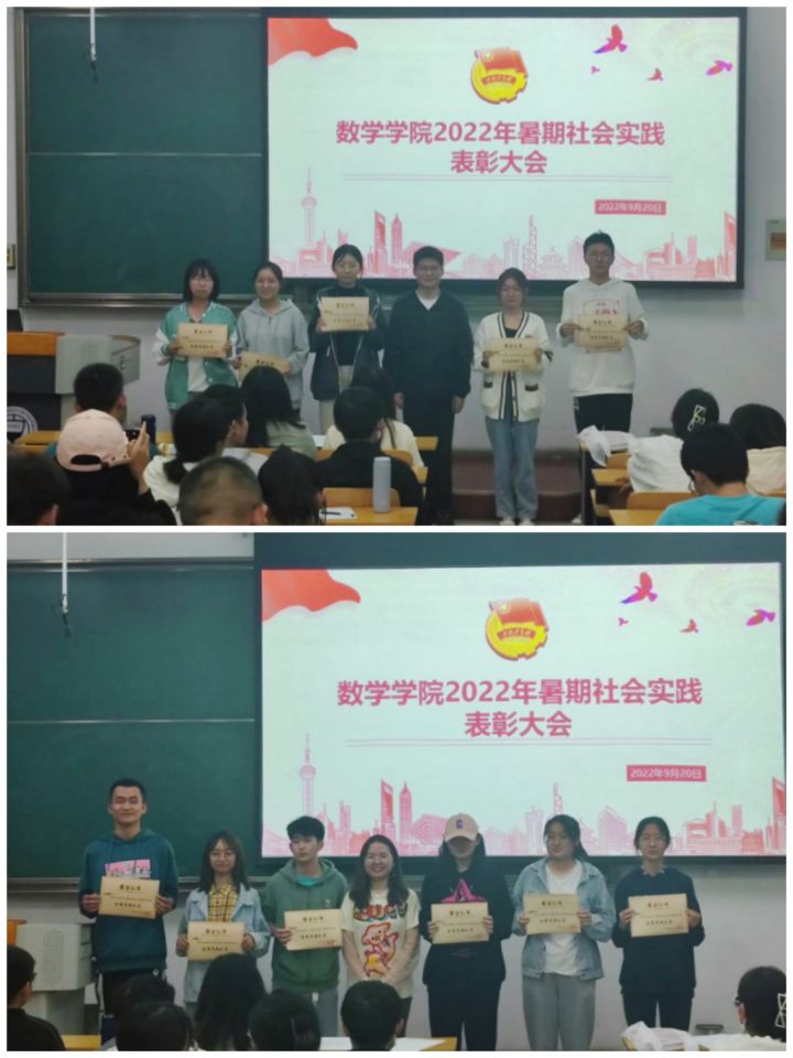 大会伊始,冯妍宣读太阳成集团tyc234cc暑期社会实践表彰名单,张欢、付坤向暑期社会实践中涌现的优秀实践队伍、集中实践优秀个人以及分散实践优秀个人颁发证书并合影留念。