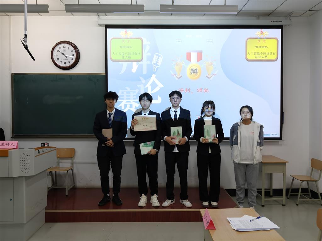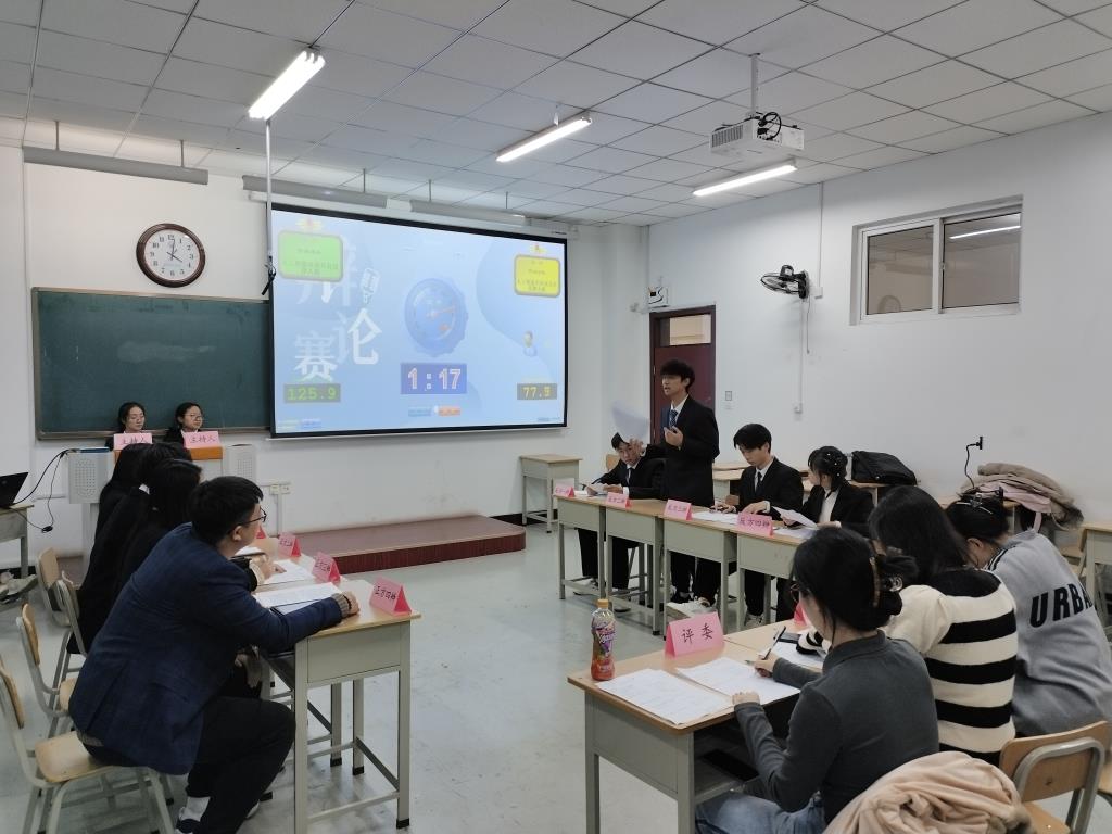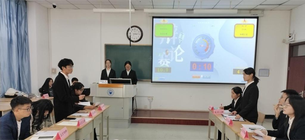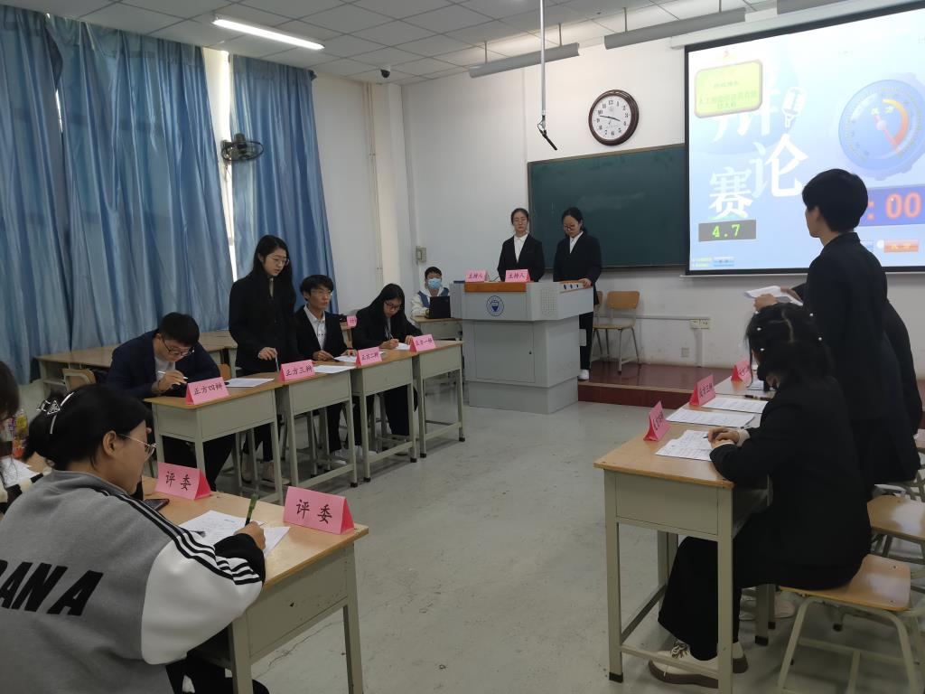 决赛主要包括展开开篇立论,攻辩、攻辩小结、自由辩论及总结陈词等五个环节。主持人介绍比赛规则后,比赛正式开始。经过多场辩论赛的锤炼,辩手们已经可以从容冷静的展开辩论,辩论礼仪更加到位,辩论的角度和方法也更具专业性。辩手们正面交锋,引经据典,激情澎湃。严谨的语句、活跃的思维让枯燥的理论瞬间鲜活。一方从容自若、口若悬河,另一方也气定神闲、滔滔不绝。双方辩手据理力争,舌枪唇剑,针锋相对,好不精彩。你有你的哲学理,我有我的事实矛,谁也不甘于下风。辩论结束后,评委对双方选手在辩论时的活跃表现予以肯定,啊对对队更胜一筹,夺得本届“青悦杯”辩论赛冠军,最佳辩手为信计2101班韩小辉。
