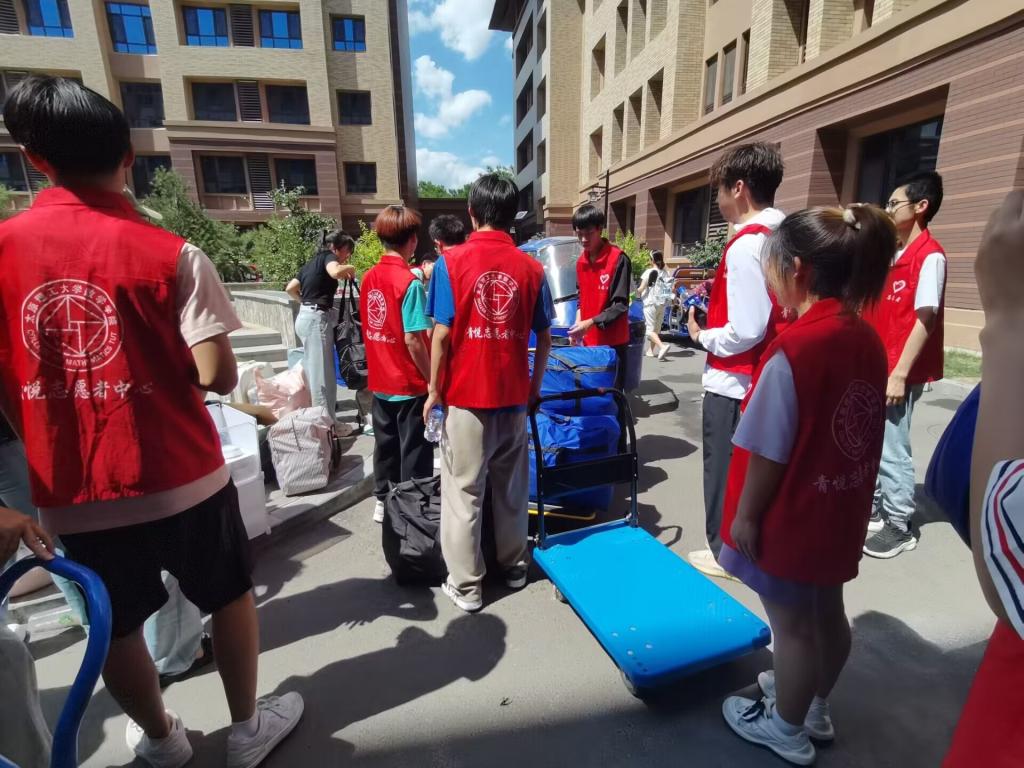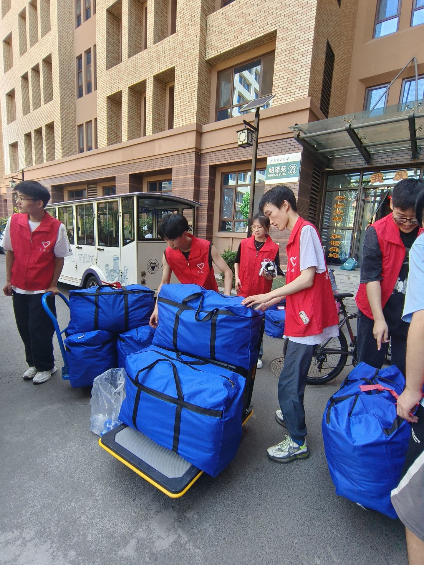 炎炎烈日下,每一位志愿者都认真负责做好自己的工作,虽然搬运的行李有些沉重,但依旧不能抵挡志愿者们的服务热情。行李勒红的双手,是志愿者们甘于奉献的写照;身着马甲的背影,是志愿者们贡献自我的象征。红马甲穿梭在堆积如山的行李间,成为了校园里一道靓丽的风景线。