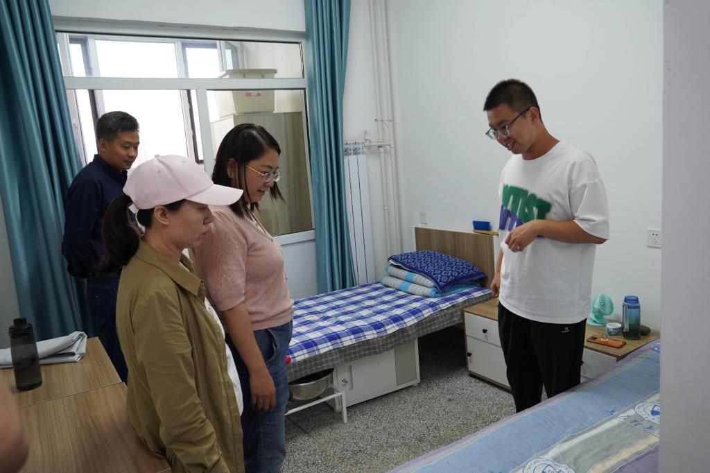 9月2日晚,公司党委书记游志勇、经理杨卫华、党委副书记李楠楠、团委书记兼学工办主任冯妍、新生班主任等前往2023级研究生新生宿舍亲切关怀慰问新生。走访期间,公司领导与新生亲切交谈,询问同学们的基本情况、入学感受、生活习惯等,并表示公司会尽最大努力为大家提供帮助。同时,希望同学们共建和谐宿舍,宿舍成员之间要团结友爱、互帮互助,快速融入太阳成集团tyc234cc这个大家庭。新生们真切体会到了来自公司的关心和爱护,表示会尽快适应新生活,走好每一步,为自己的理想目标而努力奋斗。