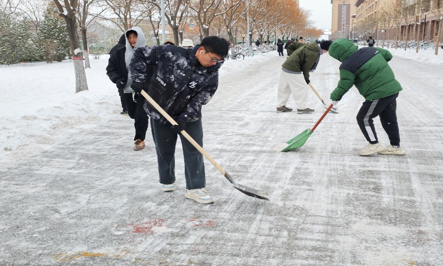 此次扫雪除冰活动不仅清除了道路上的积雪和冰块,保障了师生的安全通行,也展现了党员、员工干部以及广大同学们的担当和责任,树立了良好的榜样,增强了同学们的凝聚力和向心力。他们的行动不仅为校园增添了一份清新和美好,也为社会传递了一份正能量和温暖。