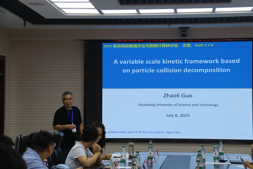 华中科技大学郭照立教授作会议首场报告,介绍了其在基于粒子碰撞分解的多尺度动理学框架方面的研究工作。郭照立教授是国家杰出青年基金获得者,长期从事多尺度输运现象建模与模拟,主持多项国家级重大科研项目。