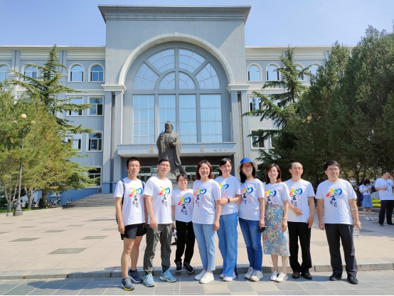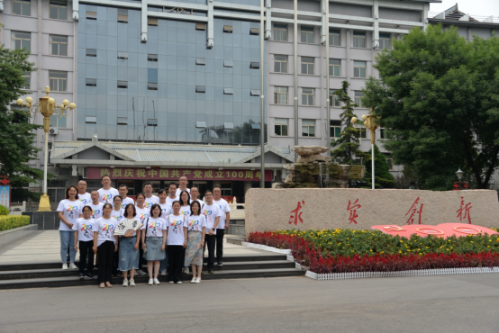 2021年7月10日早晨,我们一行30多人驱车来到当年学习生活了四年的迎西校区。在校园西北门口,保安师傅查验了提前办理好的进入校园的审批表和打印出来的每个人的健康码和行程码后,同学们开始在校园里参观,追寻求学时的记忆。走过久违的教学主楼、机械馆、8号楼、图书馆,同学们仿佛又回到了20多年前的青葱时代。到机械馆的阶梯教室坐下感受一下,想象自己在听秦效英老师的数学分析课。到当年的宿舍楼去参观,大家兴奋地说起当年的趣事,还在自己曾经住过的宿舍门口拍照留念。