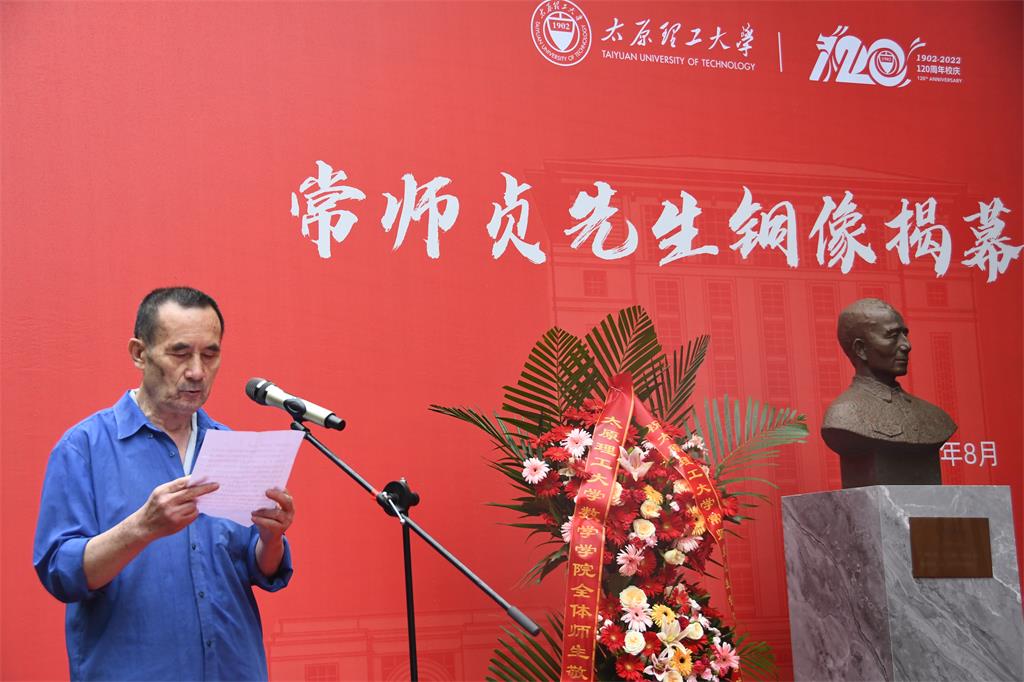 郝小星在致辞中介绍了常师贞先生的一生,高度评价了常先生为公司数学教学和团队建设及发展作出的巨大贡献,并向前来参加揭幕仪式的常师贞家人表示深深的谢意。她指出,为常师贞先生树立铜像,就是要永远缅怀常先生的光辉业绩和高尚品行,希望太阳成集团tyc234cc全体师生不断继承和发扬常师贞先生的精神,严谨治学、一丝不苟、勇于开拓、不断创新,为公司和公司发展作出更大贡献。