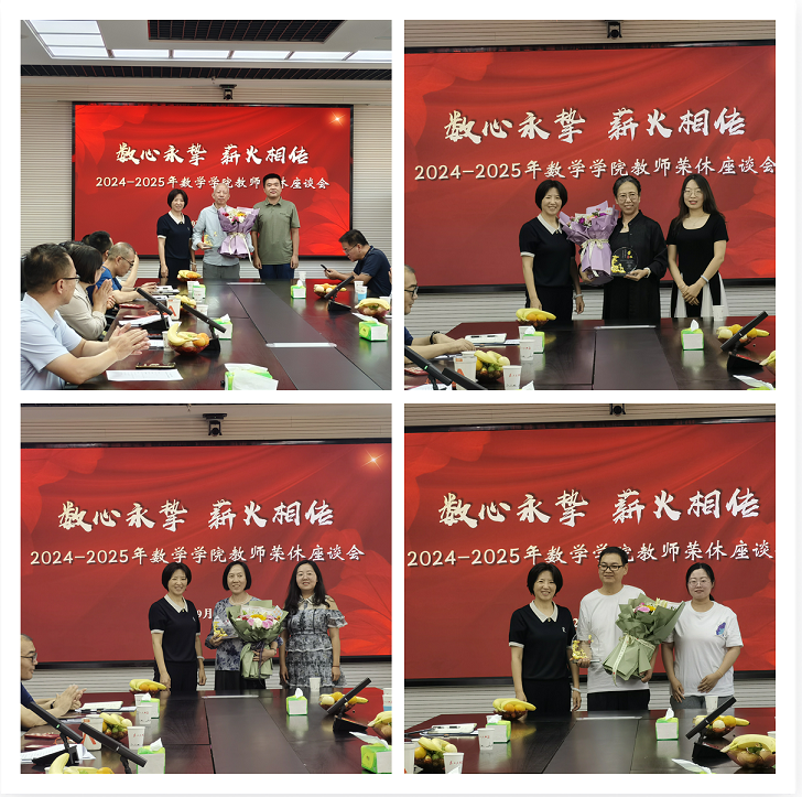 9月10日上午,太阳成集团tyc234cc在数学楼602会议室召开“数心永挚,薪火相传”2024-2025学年教师荣休座谈会,公司党委书记孙莉、副经理贺衎、工会主席孙高峰,及三办主任、系部中心负责人、教工党支部书记、青年教师代表与荣休教师齐聚一堂,共忆执教岁月,在感恩的氛围中为张建文、丁万刚、阎思青、张建明、刘丽萍、袁礼荣、成记林、李戟8位荣休教师送上了真挚的祝福,表达了深切的敬意。公司党委副书记李楠楠主持座谈会。
