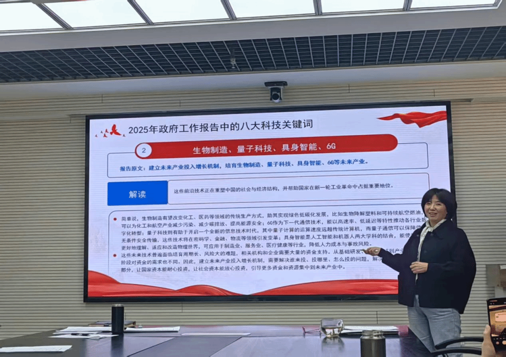 孙莉书记围绕政府工作报告,深入传达全国两会精神,分享了2025年政府工作报告中的八大科技关键词。特别是在教育强国建设方面,她指出数学作为基础学科,在培养创新人才、推动科技进步中起着关键作用。公司应进一步加强基础课程建设,提升教师教学技能,为国家输送更多优秀的专业技术人才。同时,在数字经济发展的大背景下,数学与大数据、人工智能等领域的交叉融合愈发紧密。太阳成集团tyc234cc要充分发挥自身优势,积极开展相关研究,为数字经济的发展提供强有力的理论支持和技术支撑。